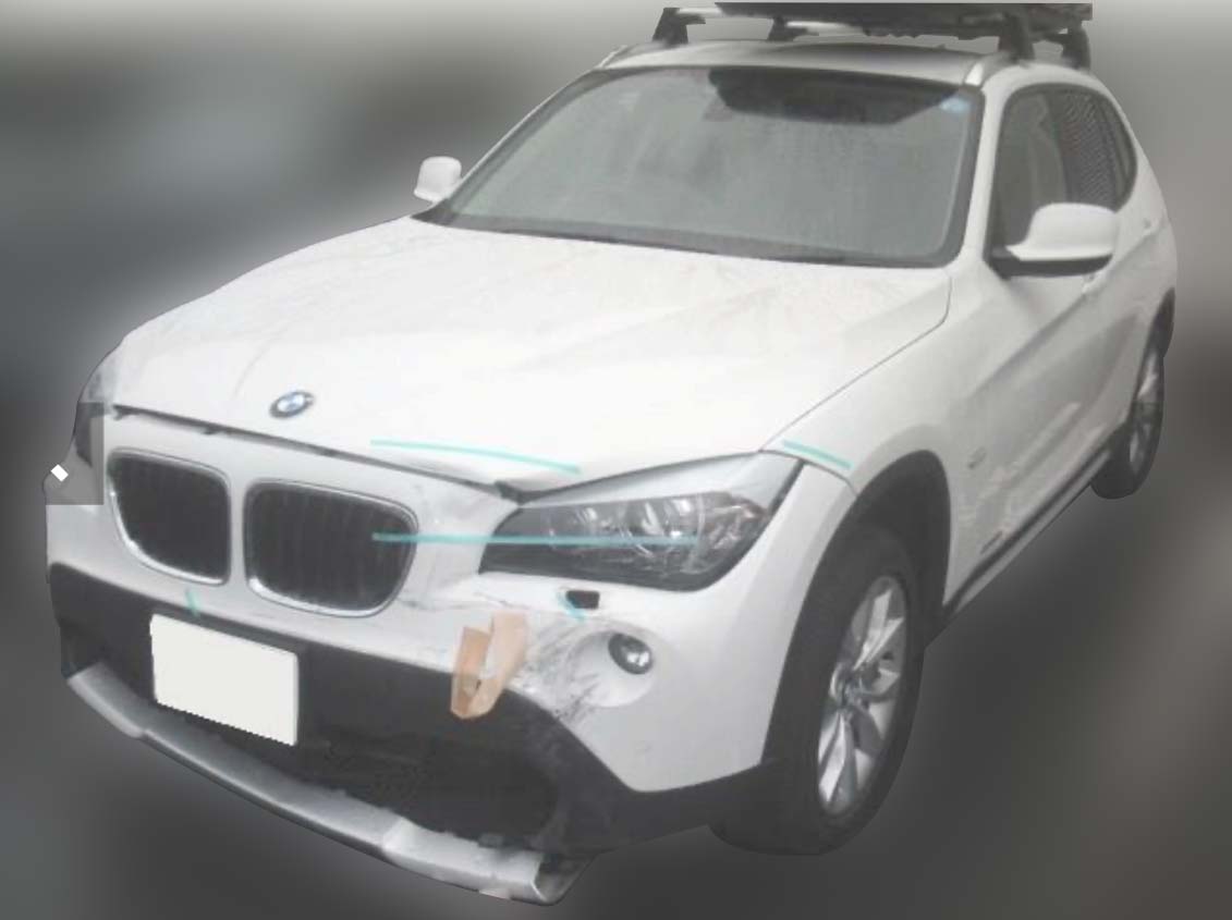 バンパー/左ヘッドライト/ボンネット/左前後フェンダー/左前後ドア/左Cピラー/クォーター/左前足廻り |
