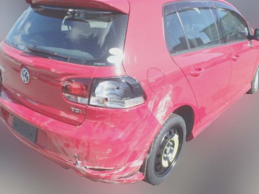 フロントバンパー/右ヘッドライト/右前フェンダー/左後ドア/リアバンパー |
